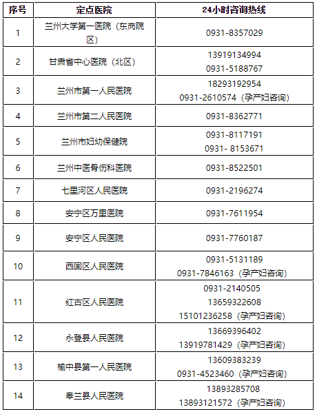蘭州市域“非綠碼”定點醫院24小時咨詢熱線