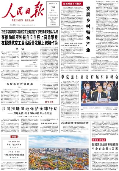 《 人民日報 》( 2022年11月14日 ? 第?01 版)