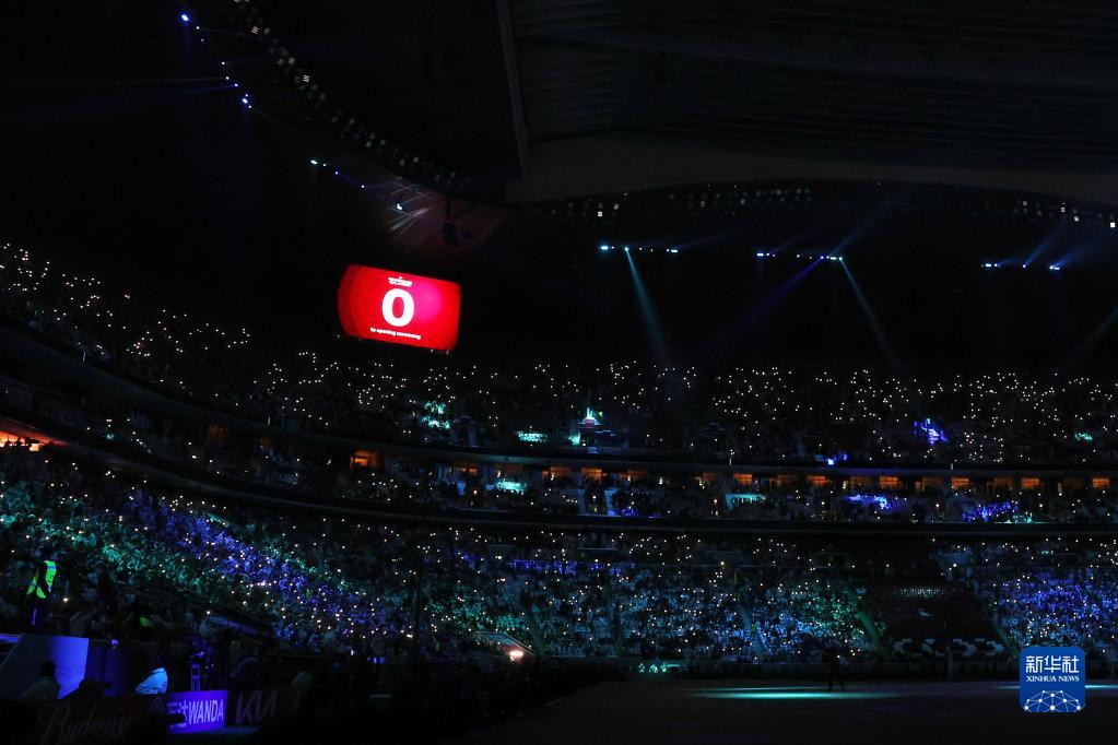 這是11月20日拍攝的開幕式上的倒計時屏幕。