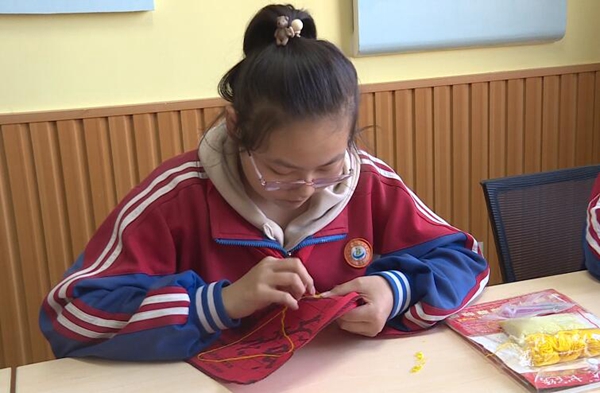 學生們參與十字繡、鉆石畫、針氈等手工作品創作。敦煌市委宣傳部供圖