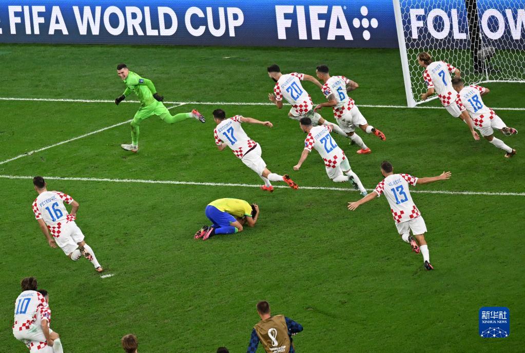 當日,在卡塔爾賴揚教育城球場進行的2022卡塔爾世界杯足球賽四分之一決賽中,克羅地亞隊與巴西隊在常規時間和加時賽戰成1比1平,通過點球大戰克羅地亞隊以總比分5比3獲勝。