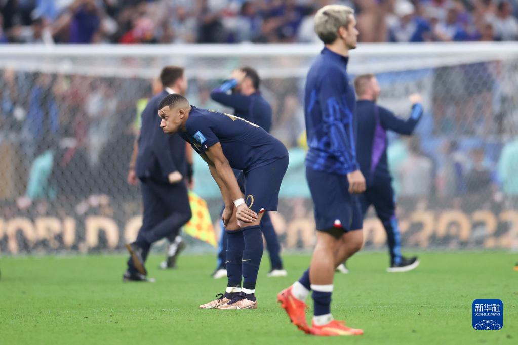 12月18日,法國隊球員姆巴佩(前左)在比賽后。新華社記者 李明 攝
