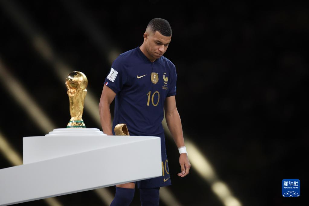12月18日,獲得世界杯金靴獎的法國隊球員姆巴佩在頒獎儀式上。新華社記者 曹燦 攝