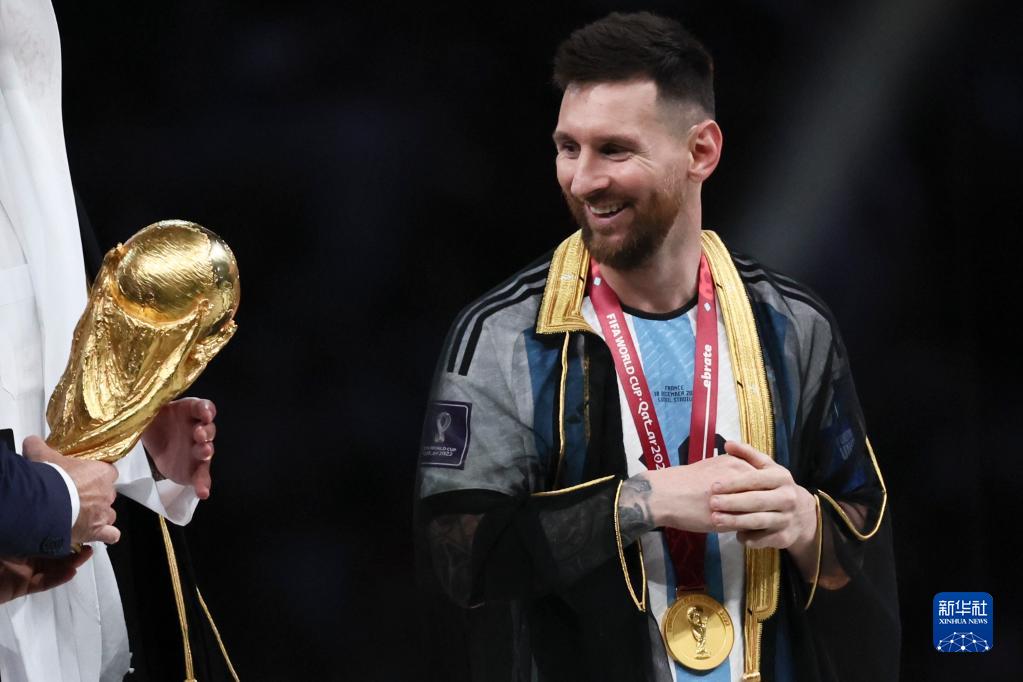 12月18日,阿根廷隊球員梅西在頒獎儀式上。新華社記者 蘭紅光 攝