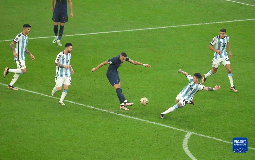 12月18日,法國隊球員姆巴佩在比賽中射門得分。新華社記者 李明 攝