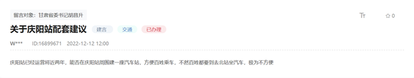 人民建議|能否在高鐵站周圍配套建汽車站?甘肅慶陽:力爭早日開工