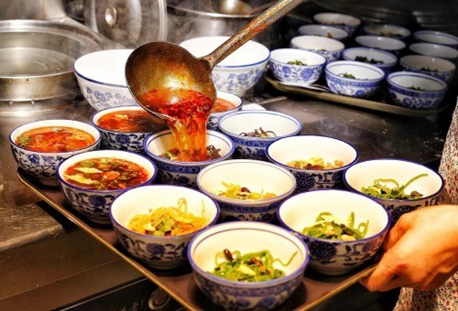 靈臺素有“隴東糧倉”美稱,來到靈臺,少不了吃一碗靈臺手工面。靈臺手工面講究“薄勁光、酸辣香、煎稀旺”。上四碗面,稱“福祿壽喜四喜面”,呈白、黃、綠、紫四種顏色,味道各異;上十小碗者,則稱“一口香”。據悉,靈臺手工面已入選“2022年度甘肅省級非遺工坊”。