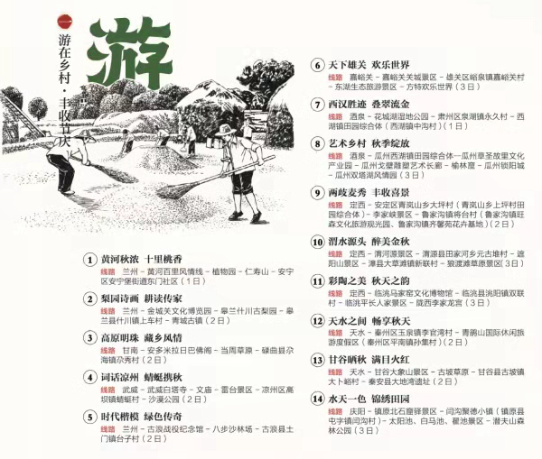 這份由甘肅省文化和旅游廳推出的2022版甘肅鄉村旅游手繪圖,具有圖文并茂、便于攜帶、適于珍藏的特點,并以亮麗、活潑的色彩和卡通形式生動形象地展現了甘肅鄉村旅游特色元素和資源產品信息,游客出行時參考此圖可暢游甘肅鄉村、感知隴原文化、體驗鄉村魅力。