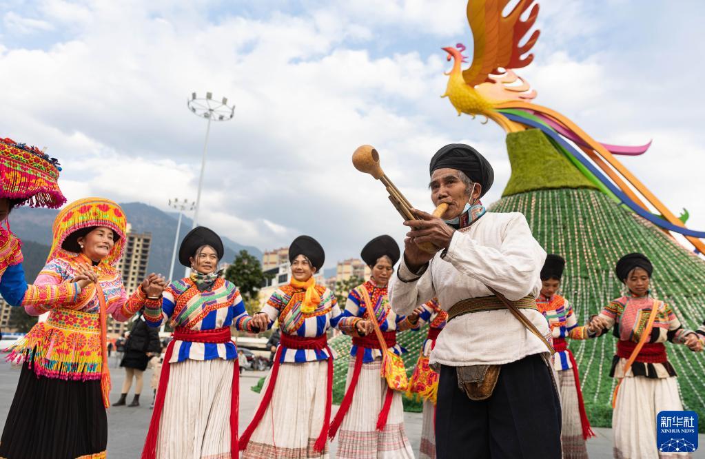 1月1日,在四川省德昌縣濱河公園,當地的傈僳族群眾載歌載舞迎接新年的到來。