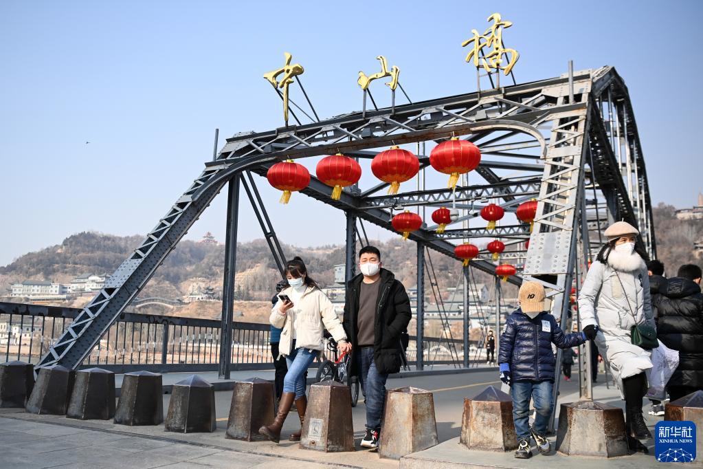 1月1日,人們在甘肅蘭州城關區中山橋游覽。