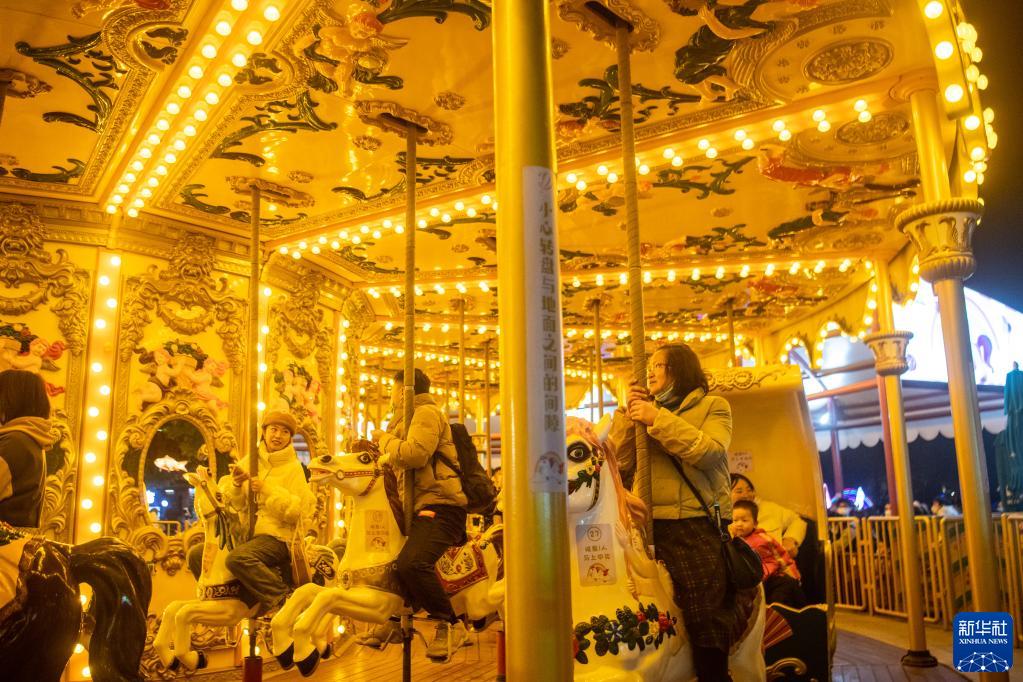 1月1日,市民在湖北武漢歡樂谷游樂園內游玩。