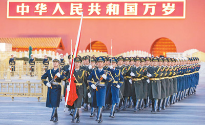 1月1日清晨,北京天安門廣場舉行隆重的升國旗儀式。