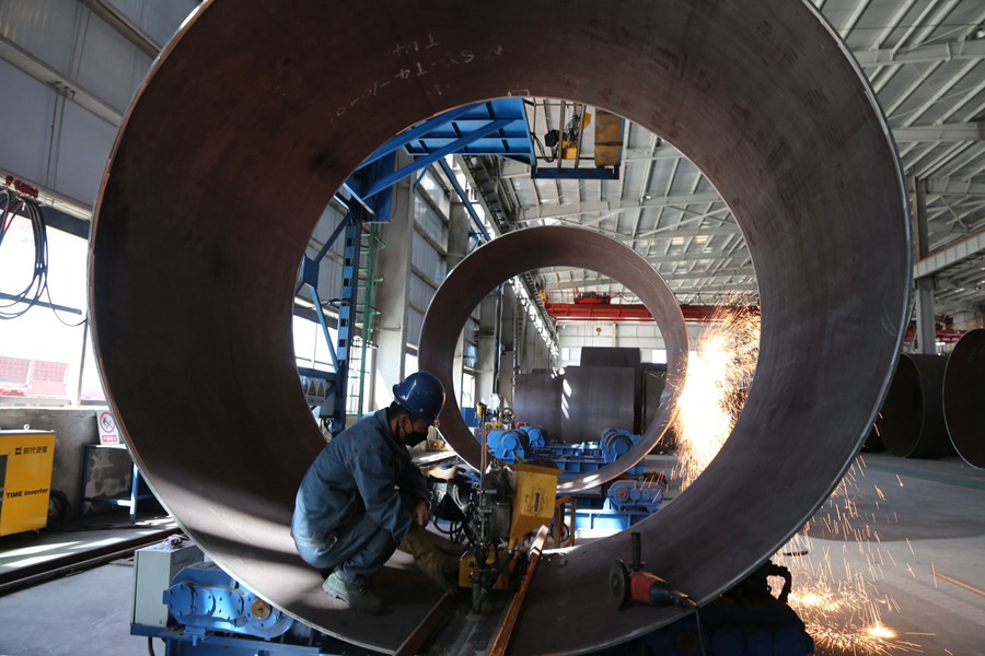 位于慶陽市的酒鋼西部重工能源裝備制造有限公司風電塔筒生產線建設項目。潘小美攝