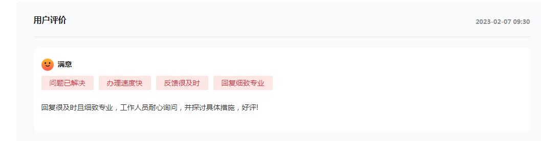 “回復很及時且細致專業,工作人員耐心詢問并探討具體措施,好評!”收到回復后,該網民在人民網“領導留言板”上給出了“滿意”的評價。