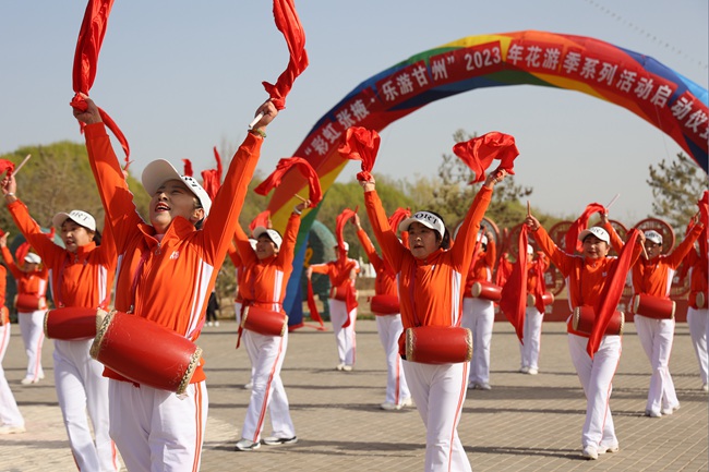 人民網蘭州4月9日電 (記者高翔)4月8日,“彩虹張掖·樂游甘州”2023花游季系列活動啟動儀式在甘肅省張掖市潤泉湖公園舉行。
