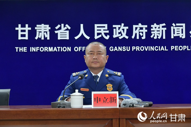 甘肅省消防救援總隊副總隊長申立新介紹有關情況。人民網記者 王文嘉攝