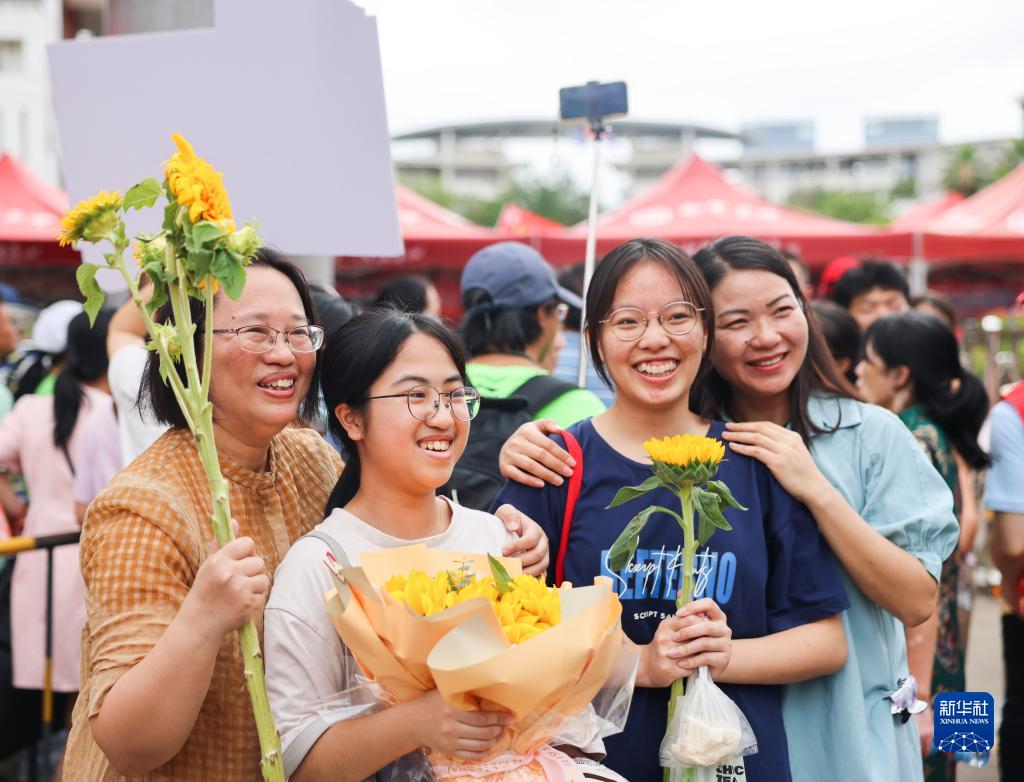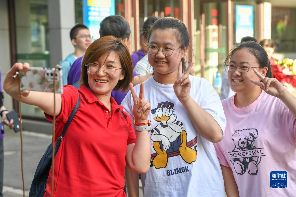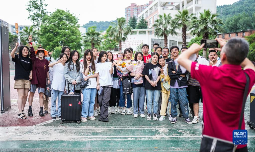 6月8日,在貴陽市烏當中學考點,考生結束考試后在考場外合影留念。