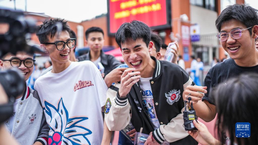 6月8日,在貴陽市烏當中學考點,考生結束考試后在考場外慶祝。