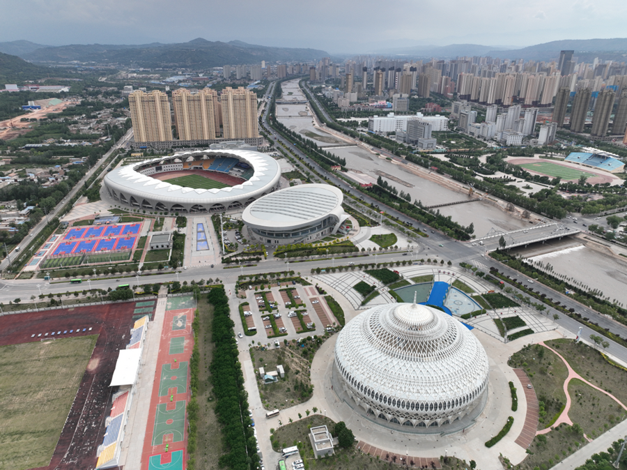臨夏奧體中心航拍。甘肅建投集團臨夏分公司供圖