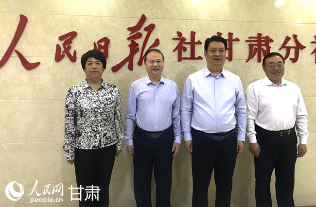 渭源縣委書記包世權(右二)一行走訪人民日報社甘肅分社。人民網記者 周婉婷攝
