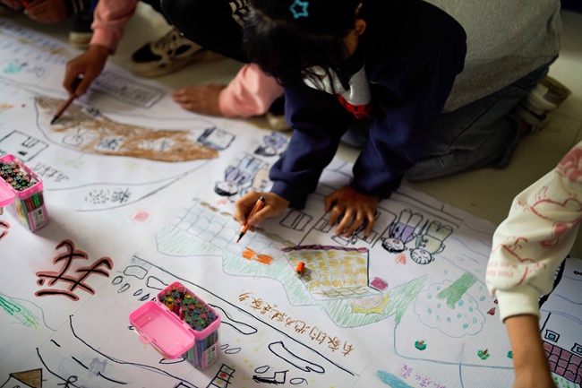 定西市隴西縣東峪村“愛心陪伴”假期托管班中,孩子們正在進行繪畫創作。甘肅省總工會供圖