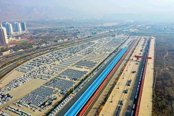蘭州市西固區河口村曾是黃河上游的重要渡口,水運發達,商賈云集。而距離河口古鎮不遠處,蘭州陸港東川鐵路物流中心小汽車特貨作業區的工作人員正駕駛著一輛輛商品車從列車車廂內依次駛出,整齊停放在停車場。這趟專列采用了商品車鐵路運輸專用車(JSQ車)國際聯運方式運輸,具有運載能力強、裝卸效率高、運輸成本低等優勢。