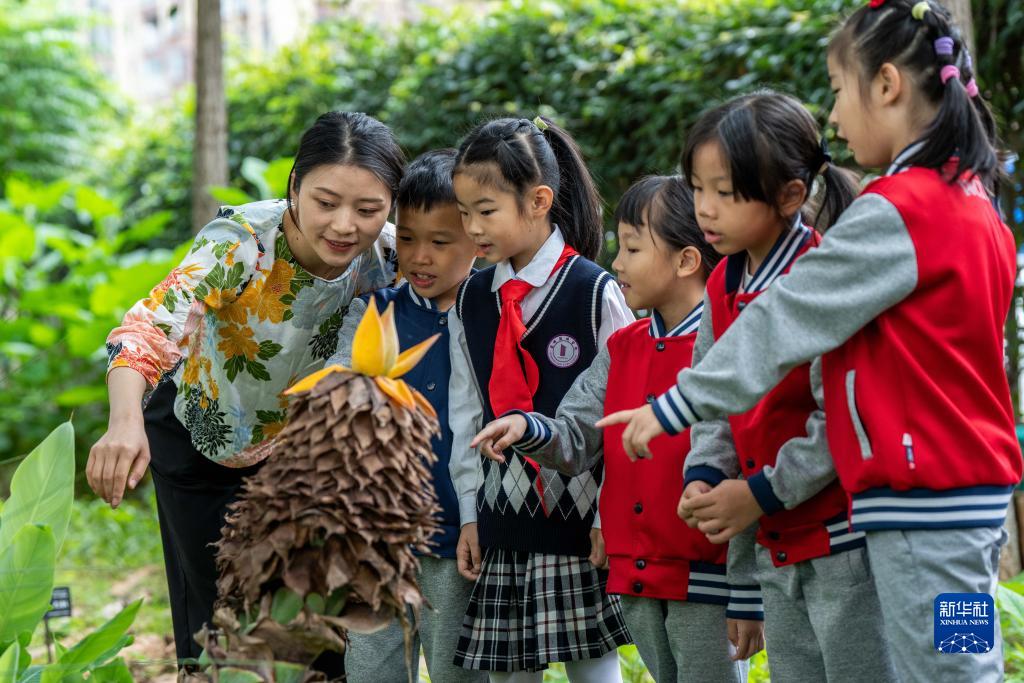 8月27日,云南省昆明市潤城學校的老師帶著學生參觀生物多樣性科普宣傳示范基地。