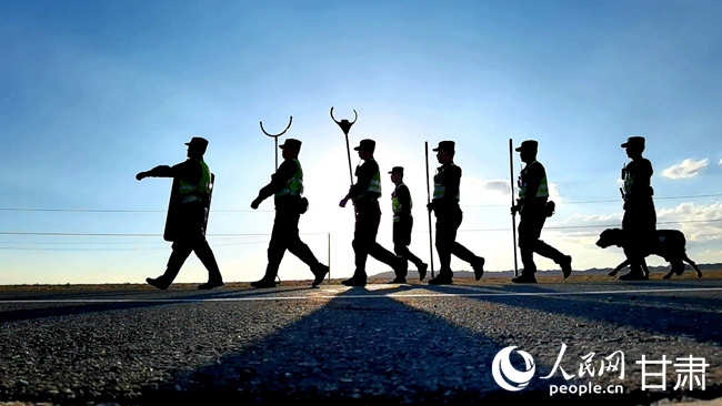 甘肅邊檢總站移民管理警察在馬鬃山邊境轄區開展常態化巡邏踏查。人民網記者 高翔攝