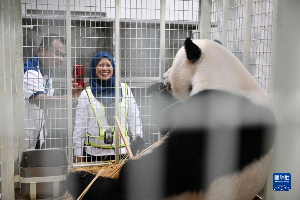 8月29日,工作人員在馬來西亞吉隆坡給大熊貓“誼誼”拍照。新華社記者 程一恒 攝