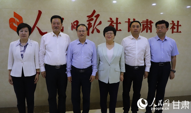 平涼市委書記王旭(右三)一行走訪人民日報社甘肅分社。人民網記者 黃帆攝