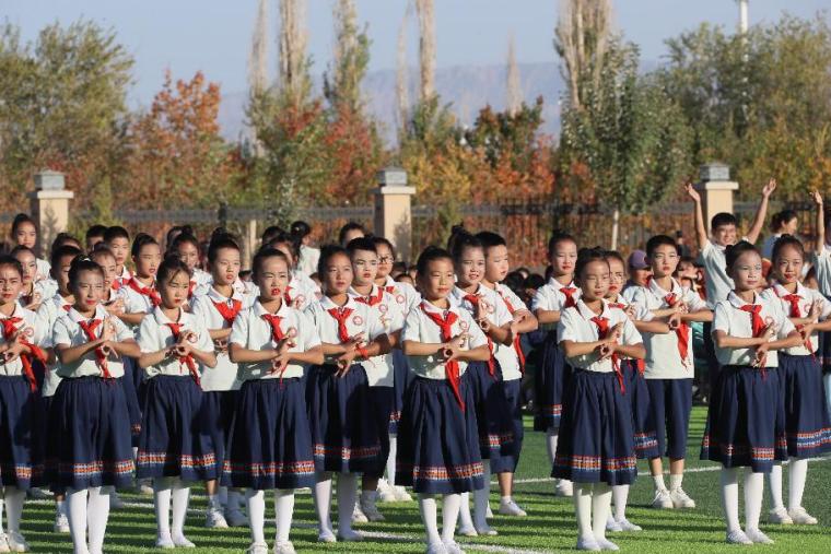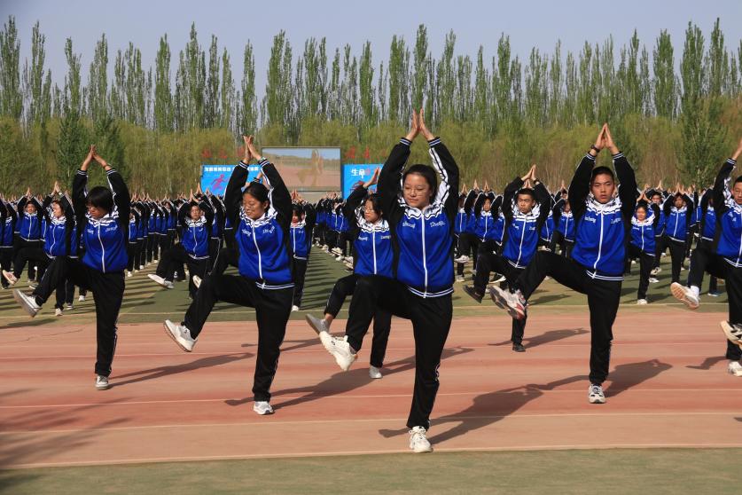 敦煌中學學生在操場做敦煌舞課間操。張曉亮 攝
