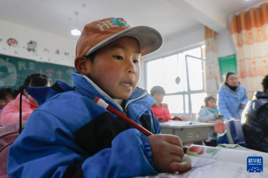12月25日,積石山縣柳溝鄉陽山希望小學的學生在上語文課。