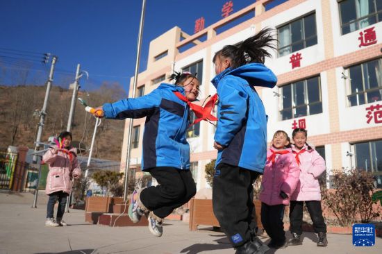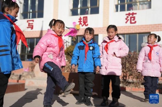 12月25日,積石山縣柳溝鄉陽山希望小學的學生在課間做游戲。