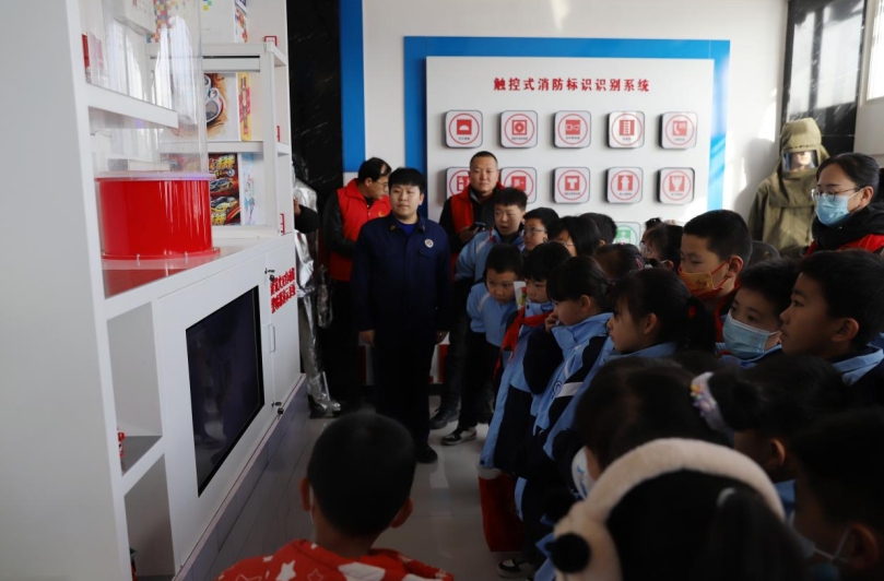 活動現場,消防宣傳員帶領孩子和家長們走進消防科普教育基地,逐一參觀體驗救援器材展示區、消防模擬報警系統、家庭電氣火災成因實驗臺、觸碰式消防標識識別系統以及高層建筑火災自動噴淋報警系統。