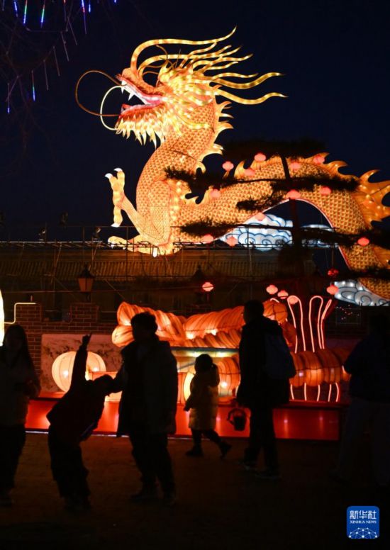 2月12日,游客在河南三門峽陜州地坑院龍年燈會上參觀游園。