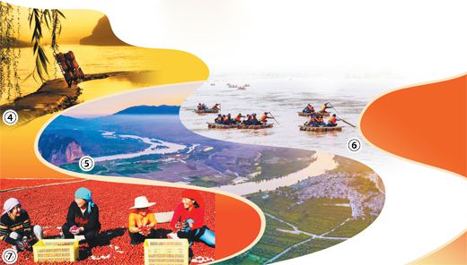 圖⑥:游客們在龍灣村附近乘坐羊皮筏子。