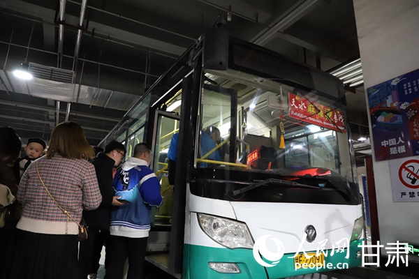 游客們在天水南站排隊乘坐“麻辣燙公交專線”。人民網記者 王文嘉攝