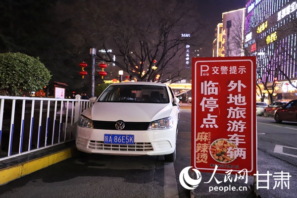 天水市公安交警部門在城區增設外地旅游車輛臨停點方便游客。人民網記者 王文嘉攝