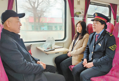 2017年,列車升級為“富民號”公益性慢火車,運行區段延長了,客流也穩中有變?!叭ネ饷娲蚬?、辦事和上學的乘客比重更大了,服務要與時俱進、更加全面?!眲⑶锩废?。