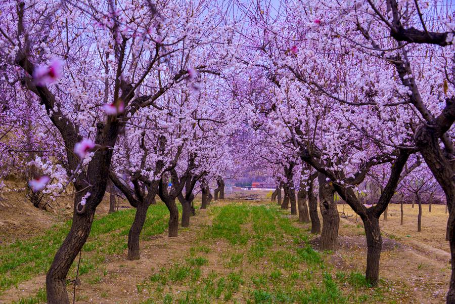 唐汪川田間地埂綻放的杏花。馬仲林攝