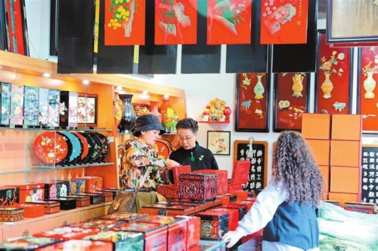 游客選購天水雕漆產品。本組圖片攝影:新甘肅·甘肅日報記者 高檣