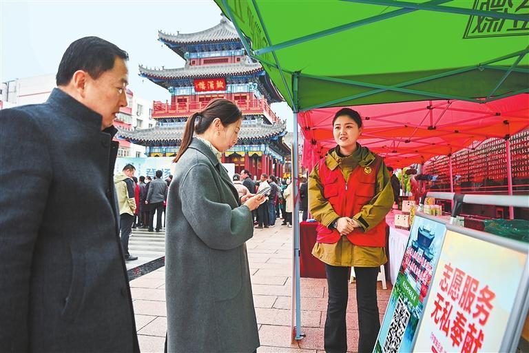 早晨9時,天水市秦州區大眾路四合院已是熙熙攘攘,中國建設銀行天水分行營業室工作人員張舒桐一天的志愿服務工作就從這里開始了。