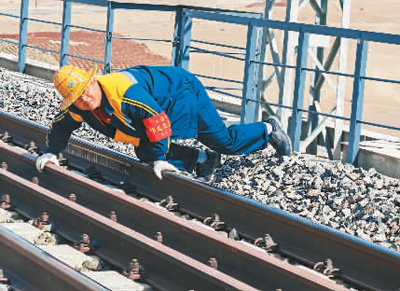 “這里夏季氣溫高達40攝氏度,冬季最低氣溫會降至零下30攝氏度,即使在同一季節,晝夜溫差也在25攝氏度以上,梁體、軌道因此會出現熱脹冷縮現象,加之重載貨物列車的反復碾壓撓曲、制動摩擦,鐵路軌道幾何尺寸變化幅度大、周期短,需要不間斷維修養護,將軌道各項技術指標控制在允許誤差范圍之內,以確保設備安全、運輸暢通?!睏罱ㄆ秸f。