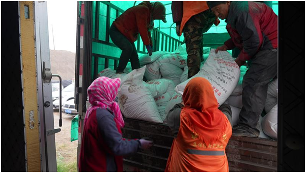 搬運化肥。嚴文博攝