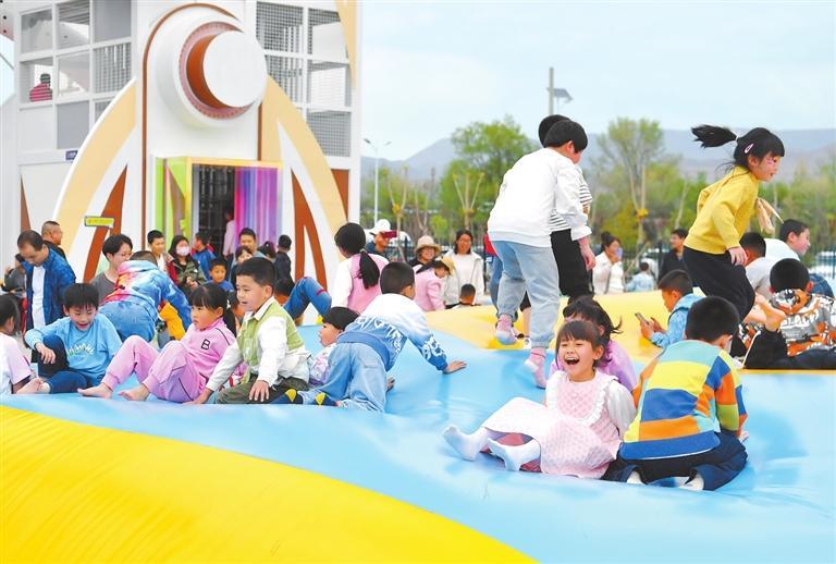 孩子們在洮河如意灣親子樂園功能區快樂玩耍。新甘肅·甘肅日報記者 馬伊星
