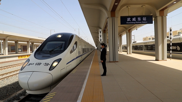 動車組列車駛出武威東站。蘭州鐵路局供圖