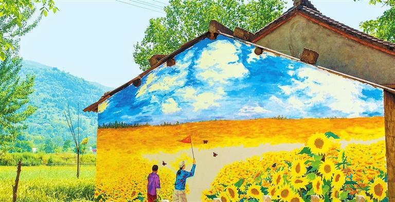 成縣鄉村民居墻壁上繪制的風景畫。新甘肅·甘肅日報記者 王思璇