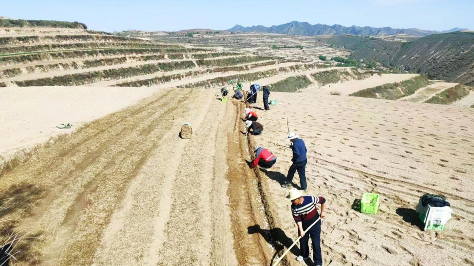 5月18日,永靖縣徐頂鄉徐家溝村群眾徐祿元正在自己的百合田間忙碌著。他和同伴們將經過高錳酸鉀溶液浸泡晾干后的獨頭百合進行剝片,按照片間距1至1.5厘米、行間距10厘米的標準,將百合鱗片放入深度為3厘米的溝中并覆土,完成后覆蓋10至15厘米的麥草,確保鱗片潮濕,保障出苗率。