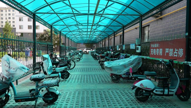 新區錦繡嘉園小區電動自行車公共車棚。王立燕攝