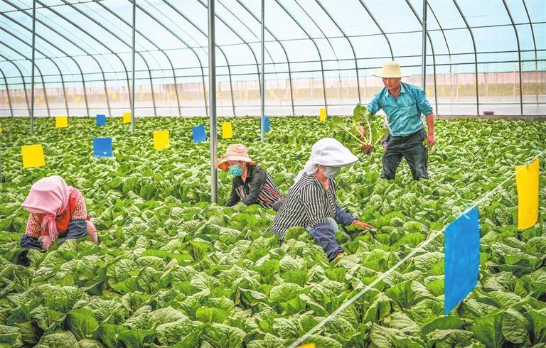 穿行在鄉間小路,伴隨著兩旁集中連片的日光溫室大棚,記者來到了黨寨鎮馬站村,大棚內,辣椒、西紅柿、娃娃菜長勢旺盛。